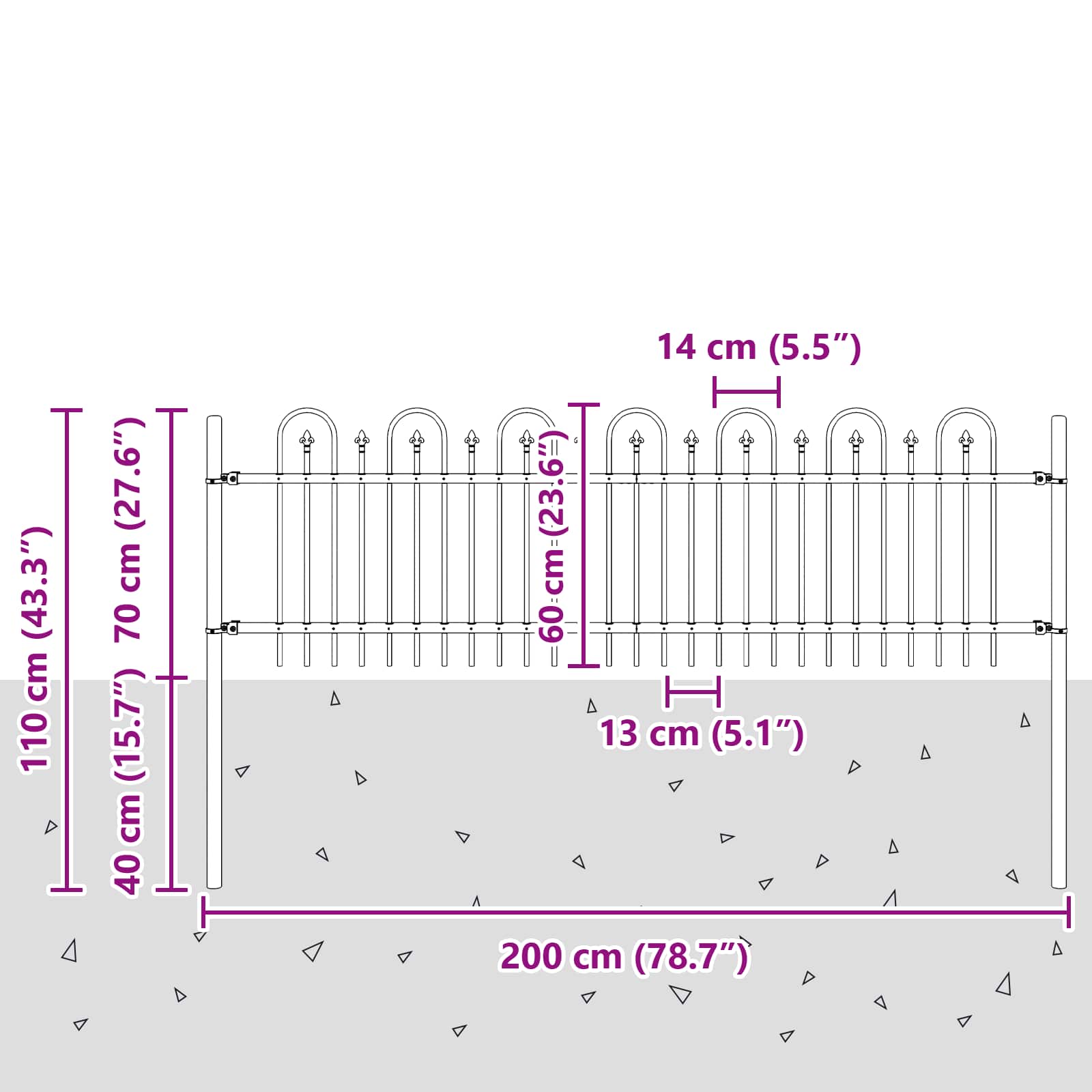 Gard Arcuș cu Vârfuri Negru 200 x 130 cm GartenMobel Dekor