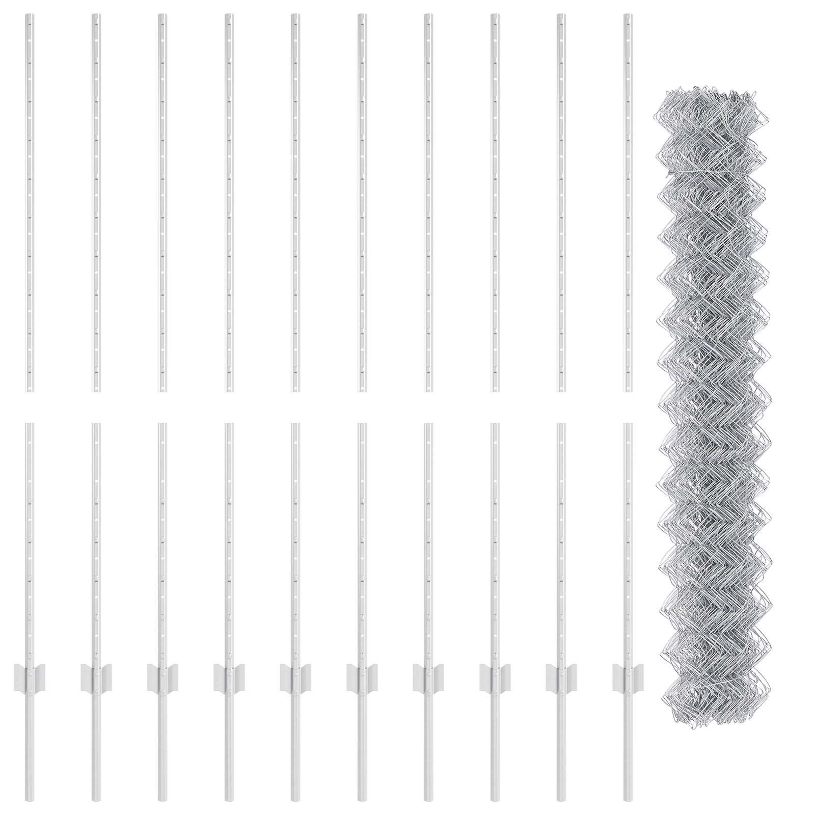 - Set Complet: Pachetul include un rulou robust de gard cu lanț împreună cu 20 de uluci, tot ce ai nevoie pentru o instalare rapidă.