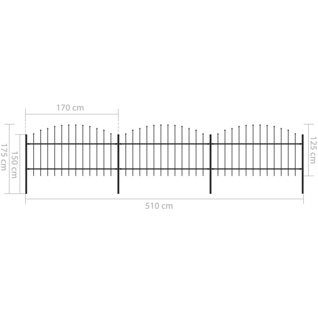 Gard de grădină cu vârf suliță, negru, 5,1 m, oțel GartenMobel Dekor