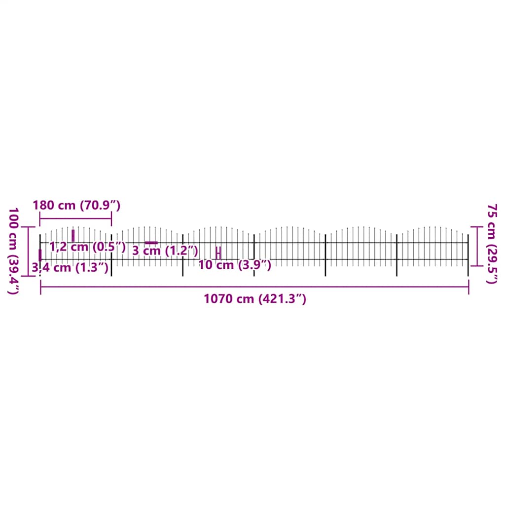 Gard de grădină cu vârf tip suliță din oțel 1070x100 cm, negru GartenMobel Dekor