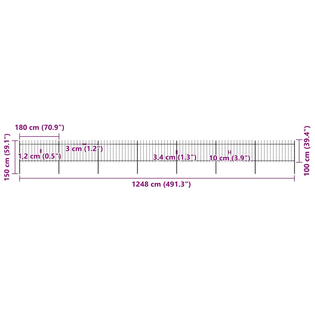 Gard de grădină cu vârf tip suliță din oțel 1248x100 cm, negru GartenMobel Dekor