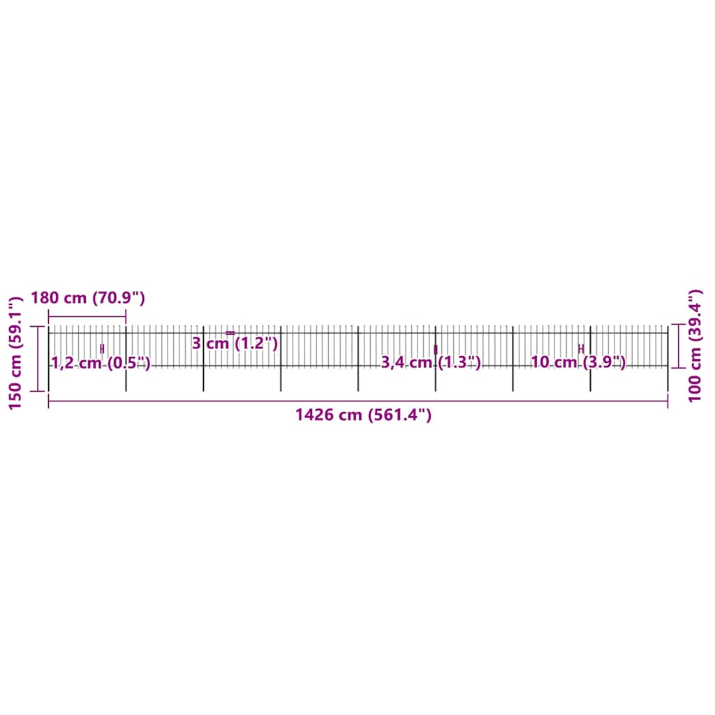 Gard de grădină cu vârf tip suliță din oțel 1426x100 cm, negru GartenMobel Dekor