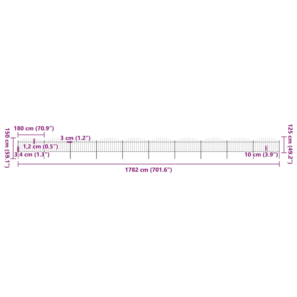 Gard de grădină cu vârf tip suliță din oțel 1781,5x150 cm, negru GartenMobel Dekor
