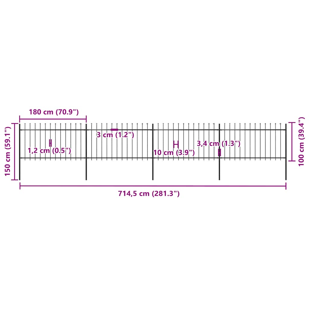 Gard de grădină cu vârf tip suliță din oțel 714,5 x 100 cm, negru GartenMobel Dekor