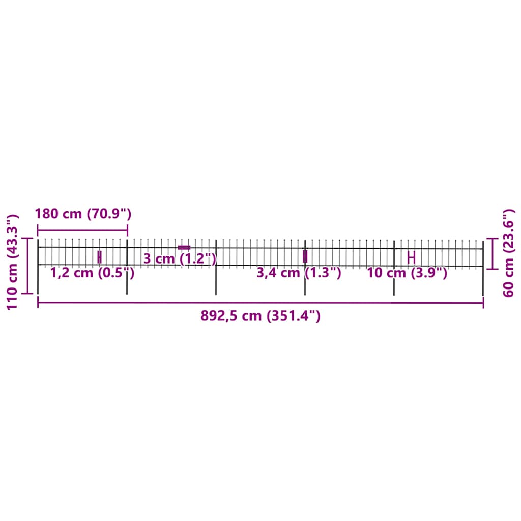 Gard de grădină cu vârf tip suliță din oțel 892,5x60 cm, negru GartenMobel Dekor