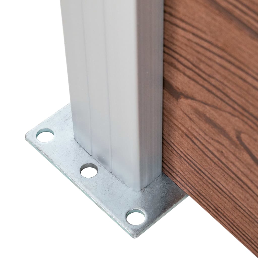 Acest gard din WPC are un imprimeu de fibre lemnoase pe o parte și un imprimeu obișnuit pe cealaltă parte, astfel încât să puteți alege designul preferat. Panoul nostru din lemn compozit nu necesită tratament suplimentar, precum uleiere sau vopsire. Este foarte durabil și rezistent la putrezire sau rugină. Datorită profilului din aluminiu din partea superioară, plăcile de gard pot fi atașate strâns una de alta, sporind astfel rigiditatea și rezistența la impact. Proiectate cu sistem modular, plăcile de gard sunt ușor de montat și vă permit să extindeți gardul după cum doriți. Stâlpii au trei caneluri, care vă permit să asamblați gardul în diferite moduri, de exemplu, în linie dreaptă (180 grade), în unghi drept (90 grade) sau în formă de „T”. Pachetul de livrare include 81 plăci din WPC, 10 stâlpi și 9 bare din aluminiu.