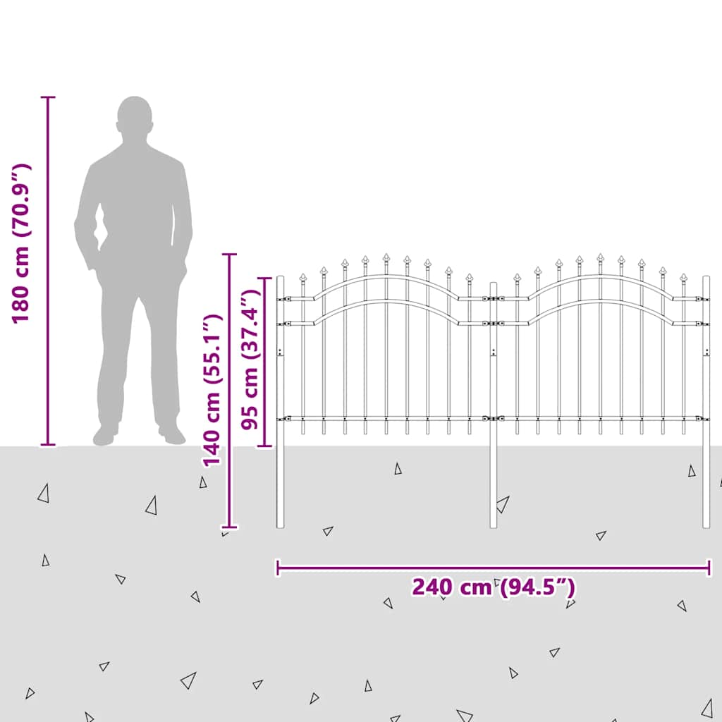Gard de grădină Woerden cu vârf tip suliță, negru, 240x100 cm, oțel GartenMobel Dekor