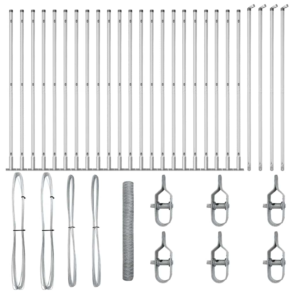 Gard din oțel galvanizat argintiu 50 x 1,2 m, cu 22 stâlpi