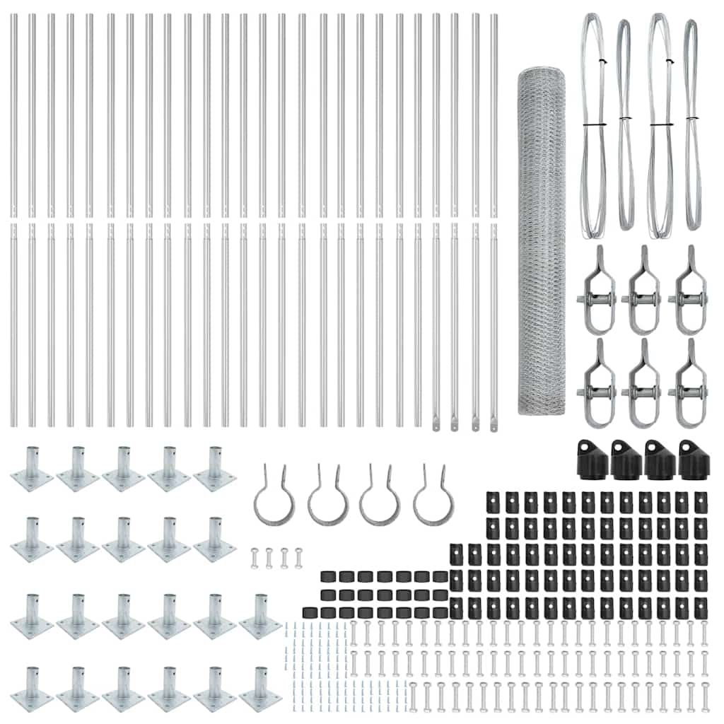 Gard din oțel galvanizat argintiu 50 x 1,2 m, cu 22 stâlpi