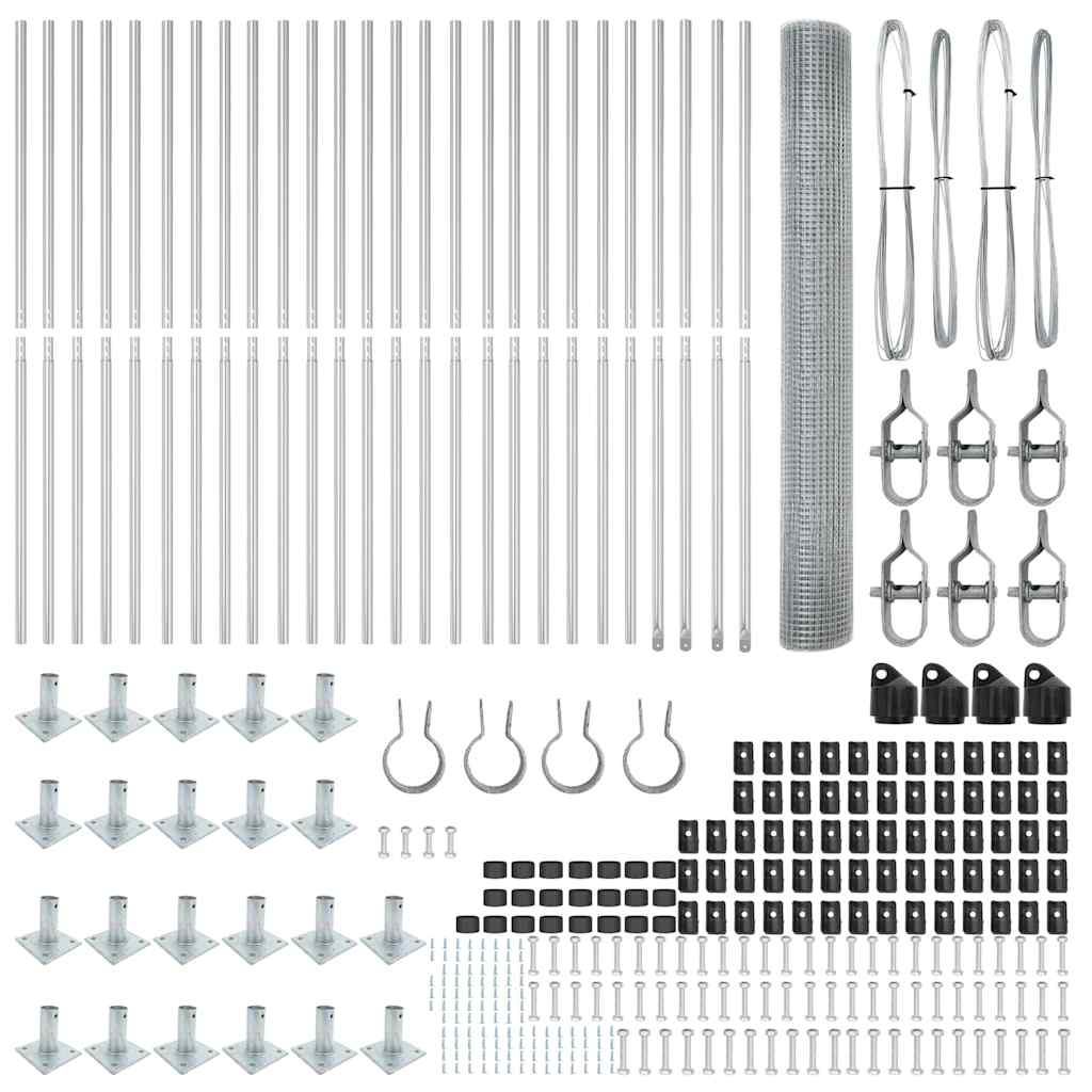 Gard din oțel galvanizat argintiu 50 x 1,2 m, cu stâlpi, pentru exterior