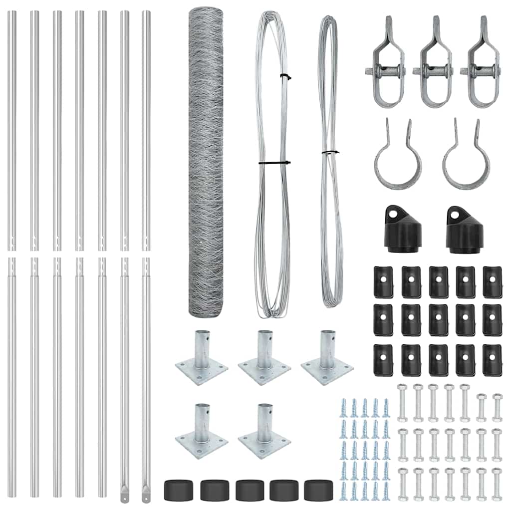 Gard din plasă de oțel argintiu 10x1 m, rezistent la exterior, cu stâlpi