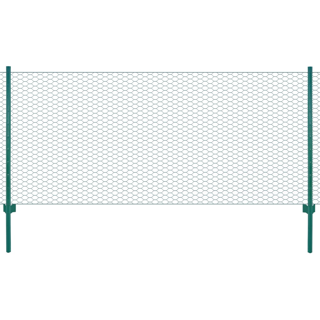 Gard din plasă de sârmă cu stâlpi, verde, 25 x 1 m, oțel GartenMobel Dekor