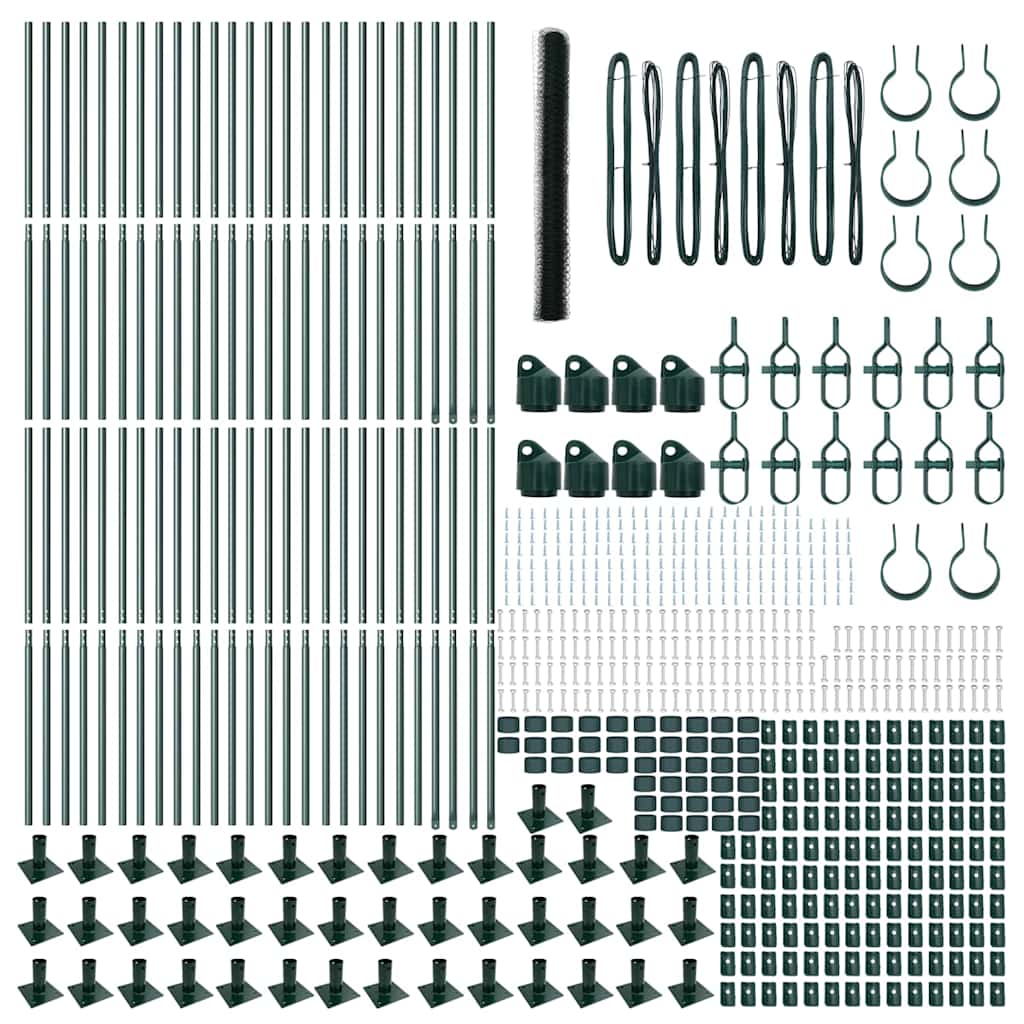 Gard din plasă verde 100 x 1,4 m cu stâlpi din oțel, pentru grădină