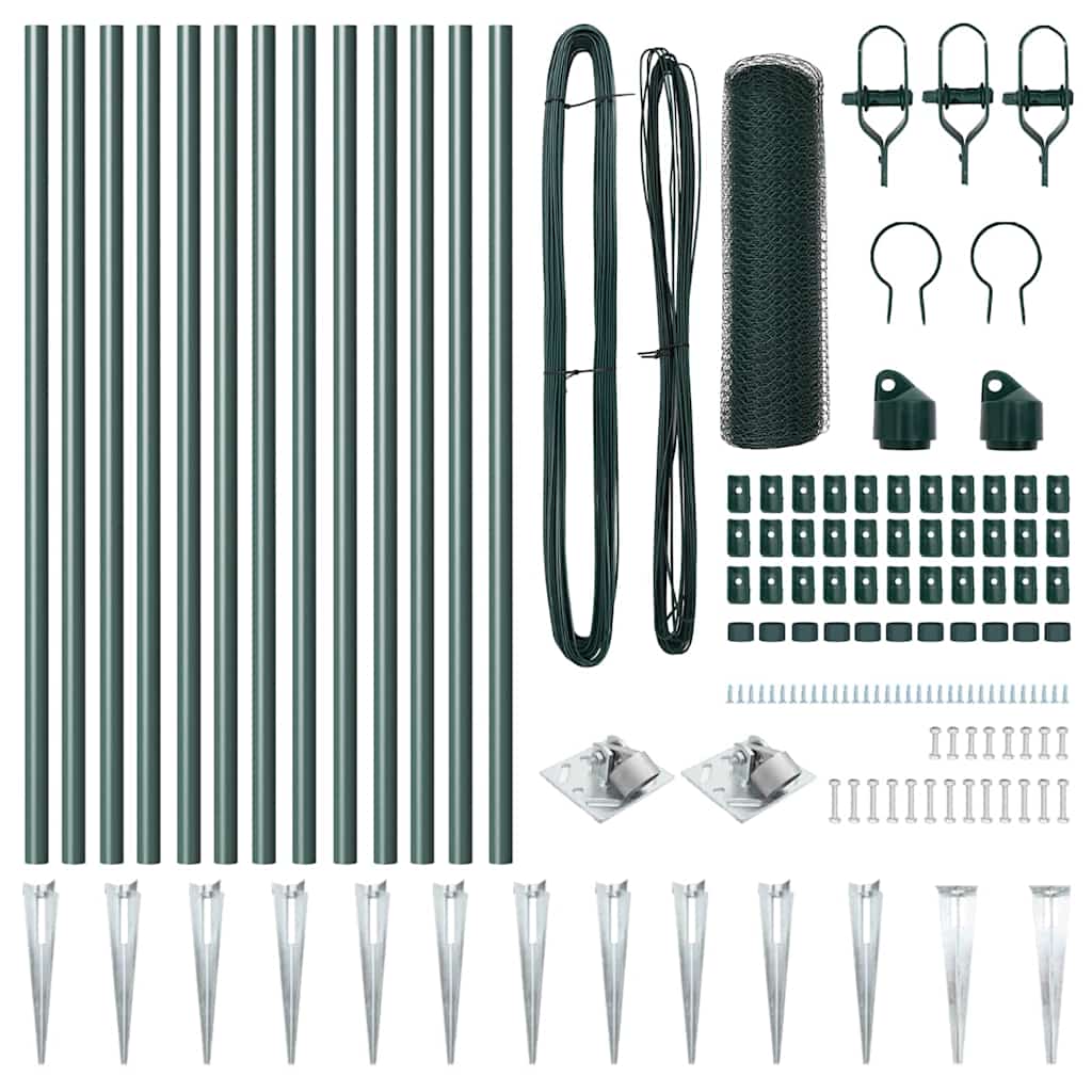 Gard din plasă verde 25 x 0,8 m, din oțel și PVC, pentru exterior
