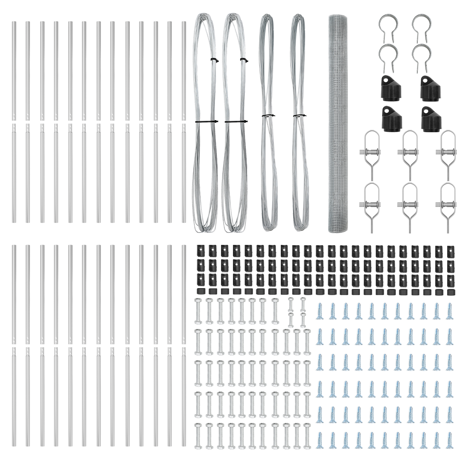 - Toate esențialele: Kitul include tot ce-ți trebuie, precum plasă de sârmă, suporturi și altele, așa că ești pe drumul cel bun pentru montare.