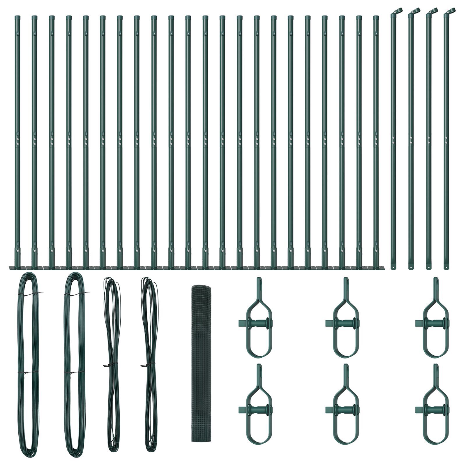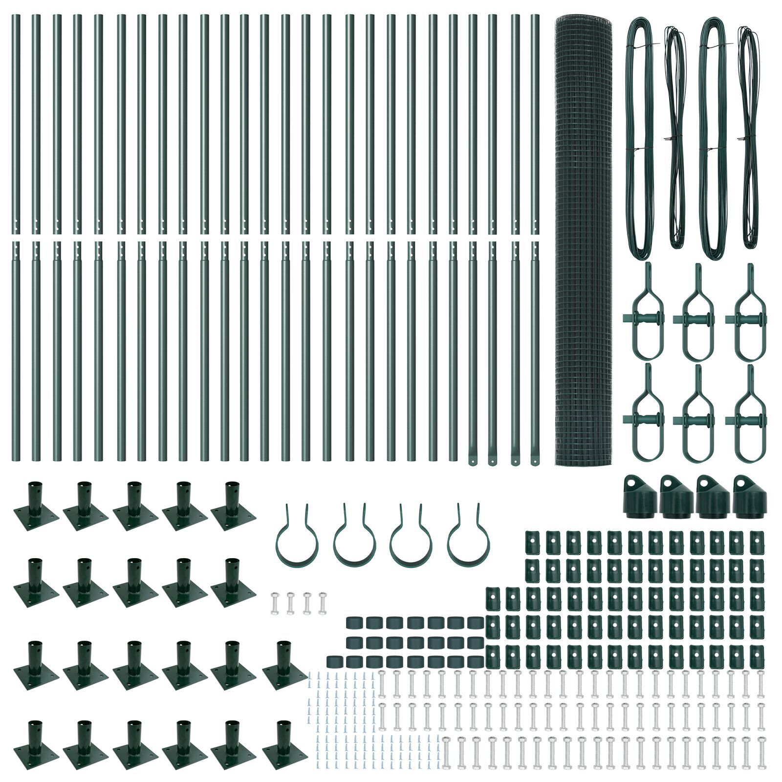 Gard din sârma sudată cu 13 stâlpi cu flanșă Verde 1.2x50 m Oțel GartenMobel Dekor