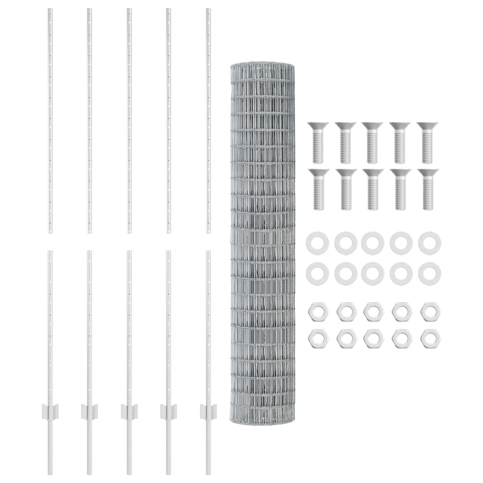 - Set complet: Pachetul include un rulou de gard galvanizat plus toate șuruburile, piulițele și rondellele necesare pentru o împrejmuire completă.