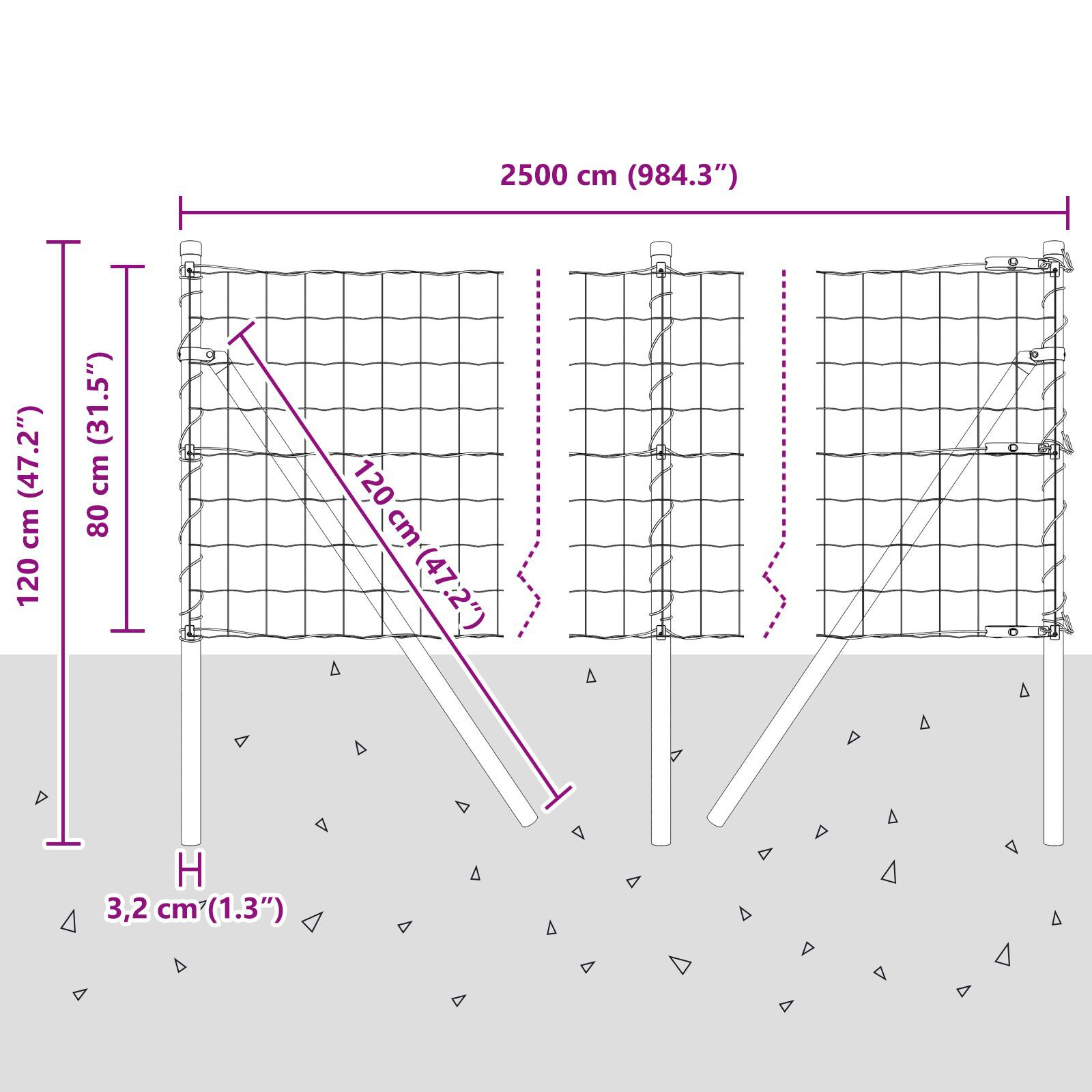 Gard Euro cu 13 stâlpi 0.8x25 m Oțel galvanizat GartenMobel Dekor