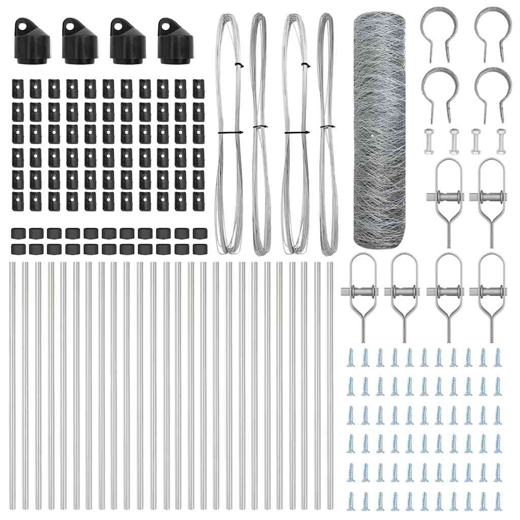 Gard exterior din oțel galvanizat argintiu, 50 x 0,8 m, plasă 36 mm