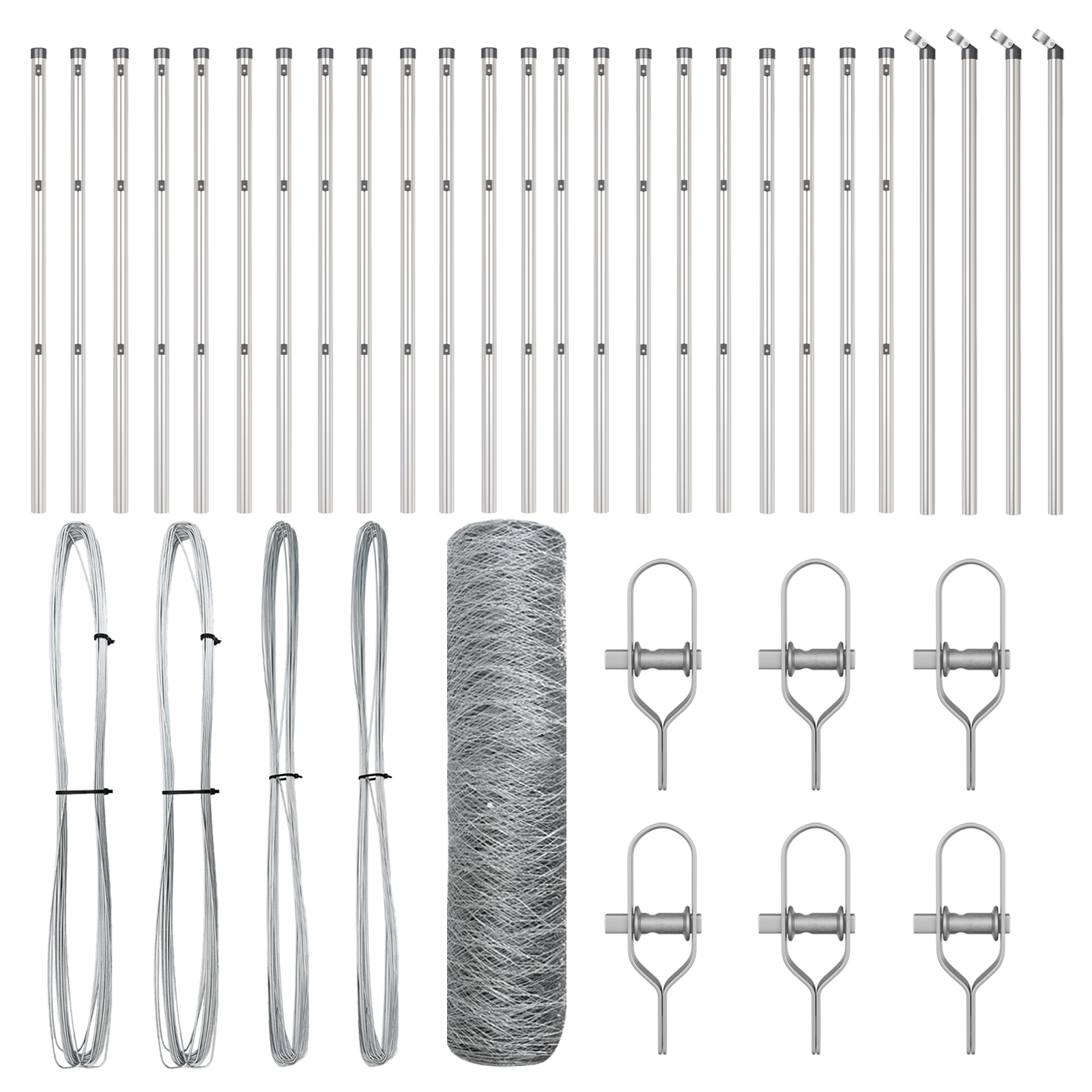 - Kit Complet: Acest set de garduri vine cu toate elementele necesare, cum ar fi stâlpii, plasă de sârmă și tensioanele, oferindu-ți tot ce ai nevoie pentru o instalare ușoară.