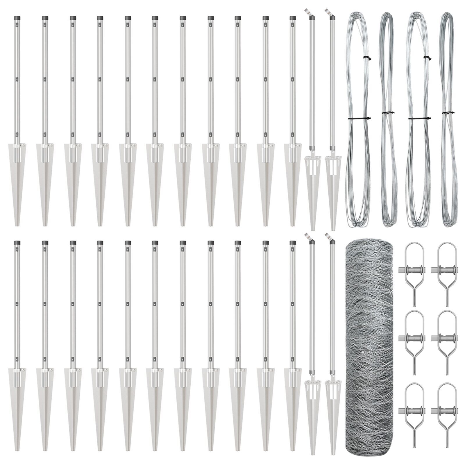 Gard Hexagonal 0.4x50 m Oțel Galvanizat, Stâlpi pentru Gard cu Ancoră 13 buc Ø32 mm 60 cm Oțel Galvanizat GartenMobel Dekor