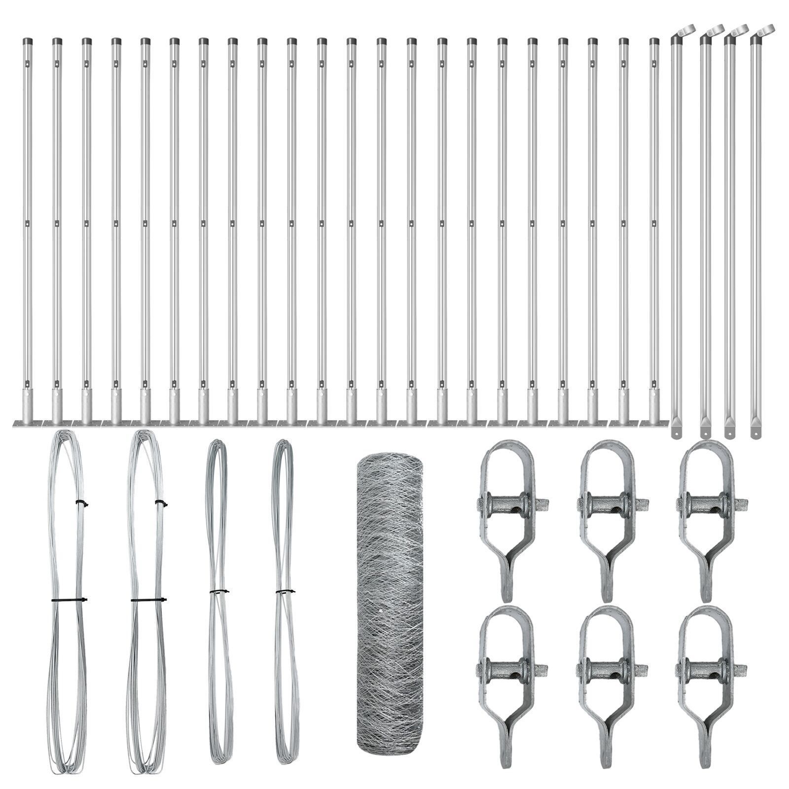 Gard Hexagonal 0.4x50 m Oțel Galvanizat, Stâlpi pentru Gard cu Plăci de Bază 13 buc Ø32mm 50cm Oțel Galvanizat GartenMobel Dekor