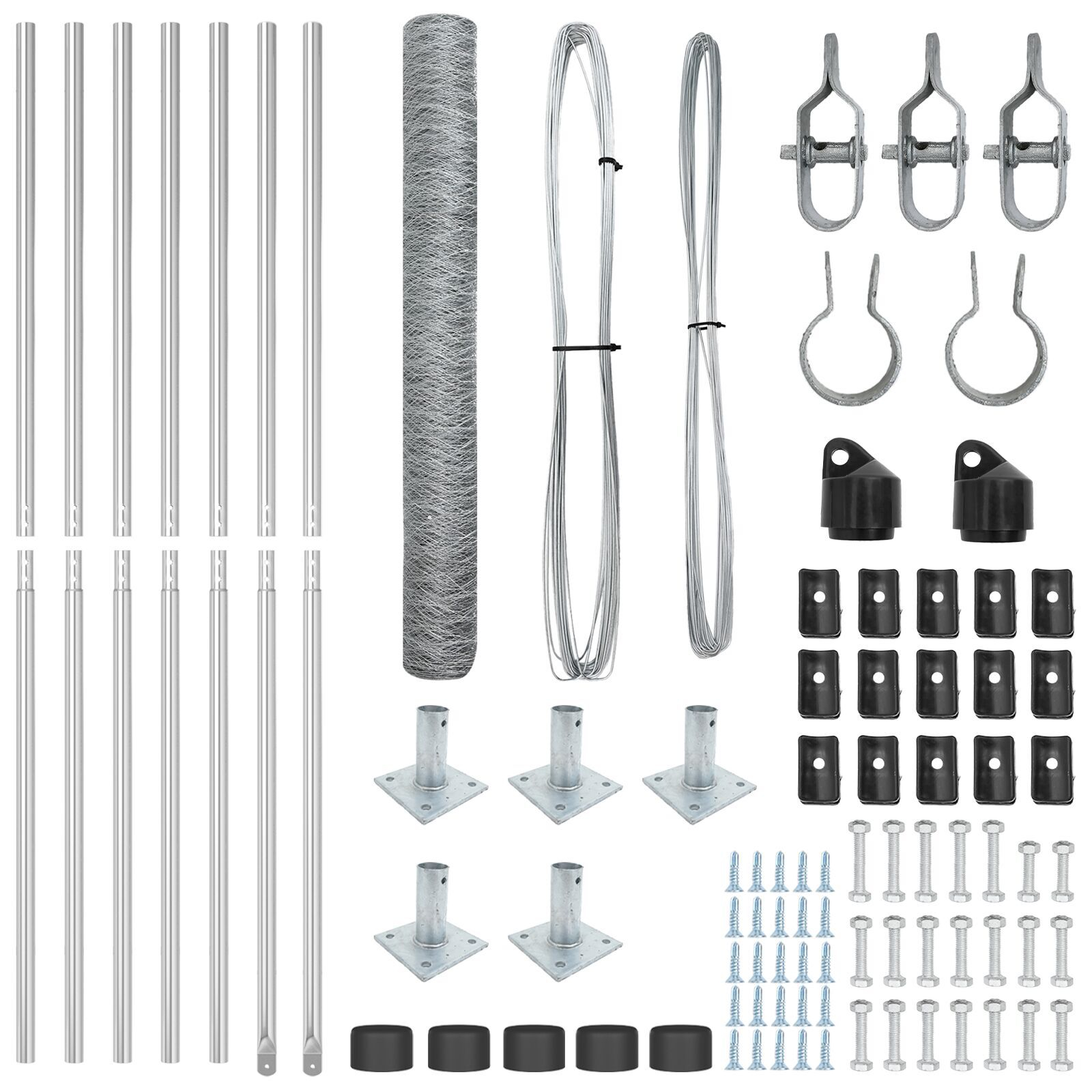 - Kit Complet: Setul vine cu tot ce-ți trebuie, inclusiv stâlpi, rolă de plasă, fir și cleme pentru o instalare simplă.