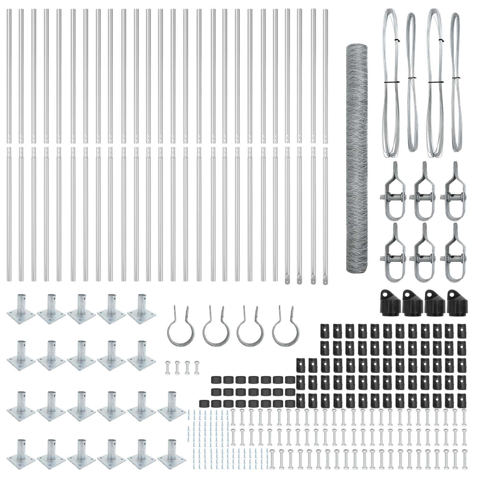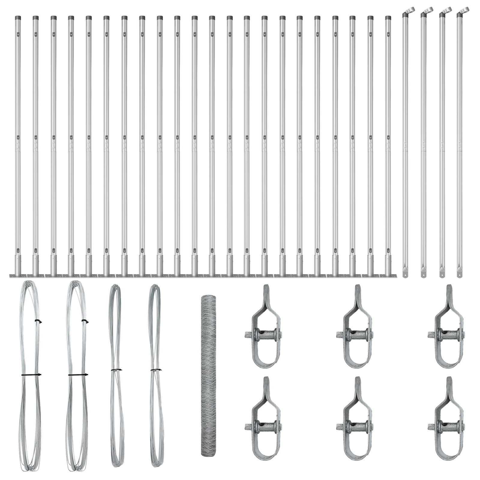 - Kit Complet: Setul ăsta de garduri vine cu toate piesele necesare, inclusiv stâlpi de gard, șine, plasă de sârmă și cleme, praktiștizând procesul de instalare.