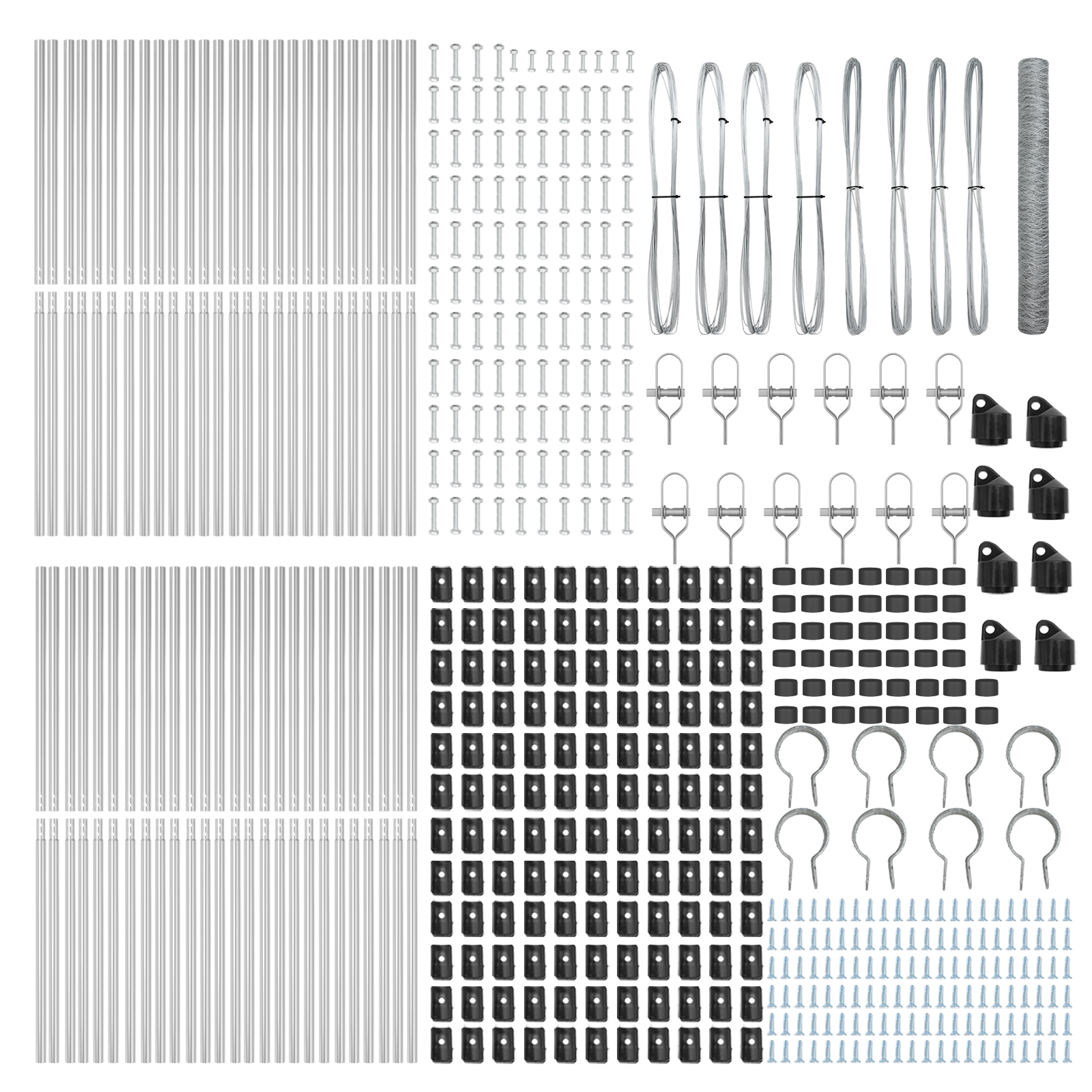 - Kit Complet: Acest set de îngrădire include toate piesele necesare, cum ar fi stâlpi de gard, șine, sârmă și clipuri de fixare, oferindu-ți tot ce ai nevoie pentru o asamblare de succes.