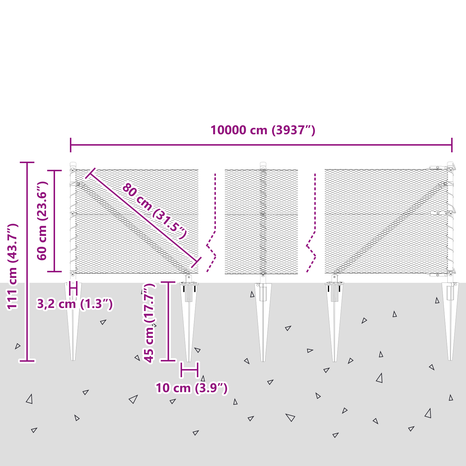 - Montare Ușoară: Conceput pentru a fi practic, gardul se montează ușor de două persoane cu uneltele de bază precum un ciocan, mallet, coardă de măsurat și clește.