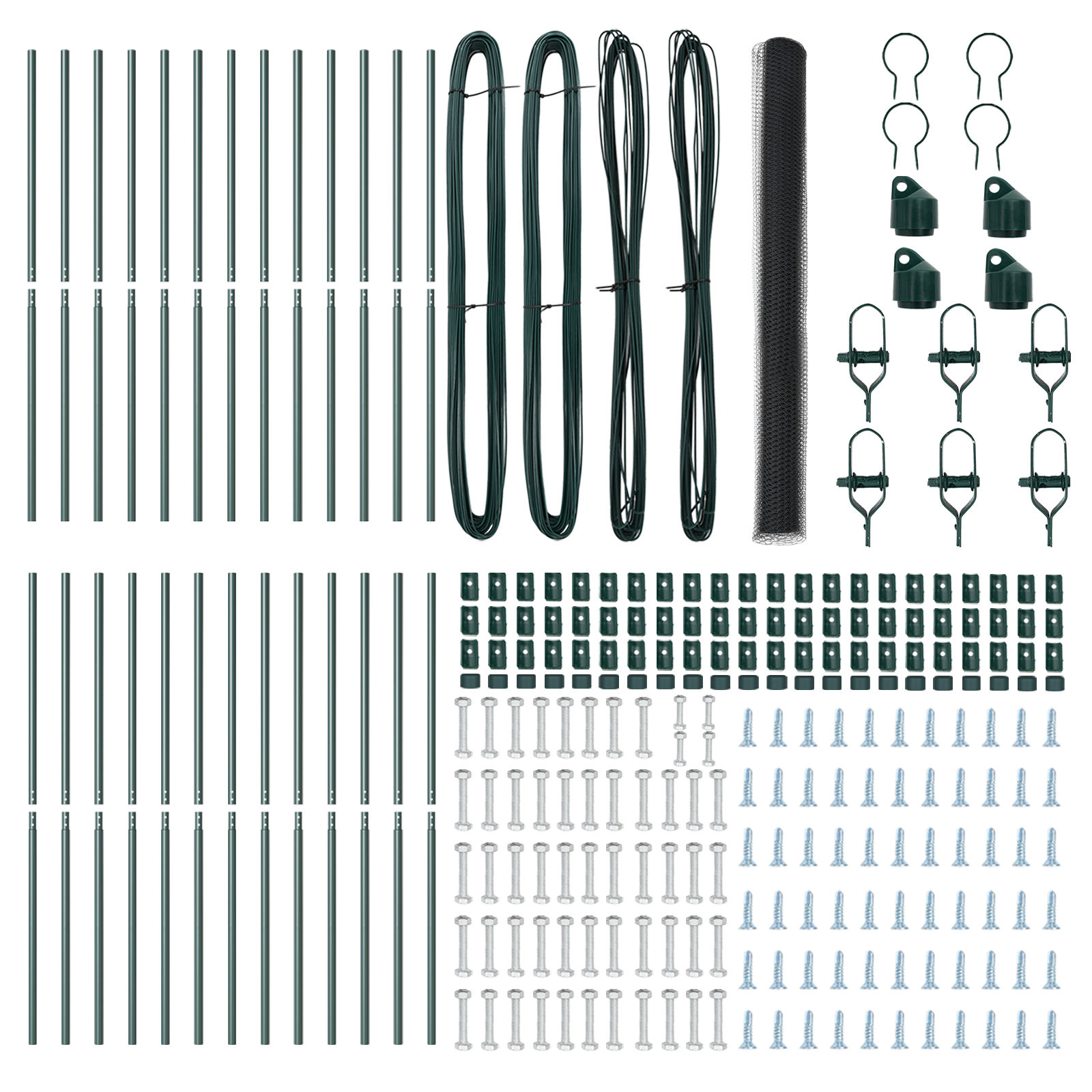 - Kit Complet: Setul include toate părțile necesare, precum stâlpi de gard, plasă de împrejmuire, cleme și fire, deci instalarea e floare la ureche.