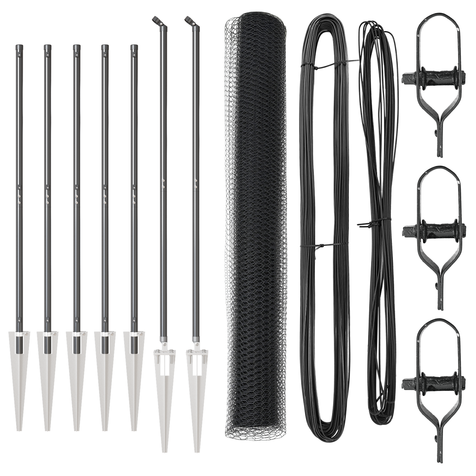 - Kit Complet de Garduri: Kitul ăsta include toate elementele esențiale, cum ar fi stâlpi pentru gard, plasă rulou, ancore și sârmă, deci ai tot ce îți trebuie pentru o instalare reușită.