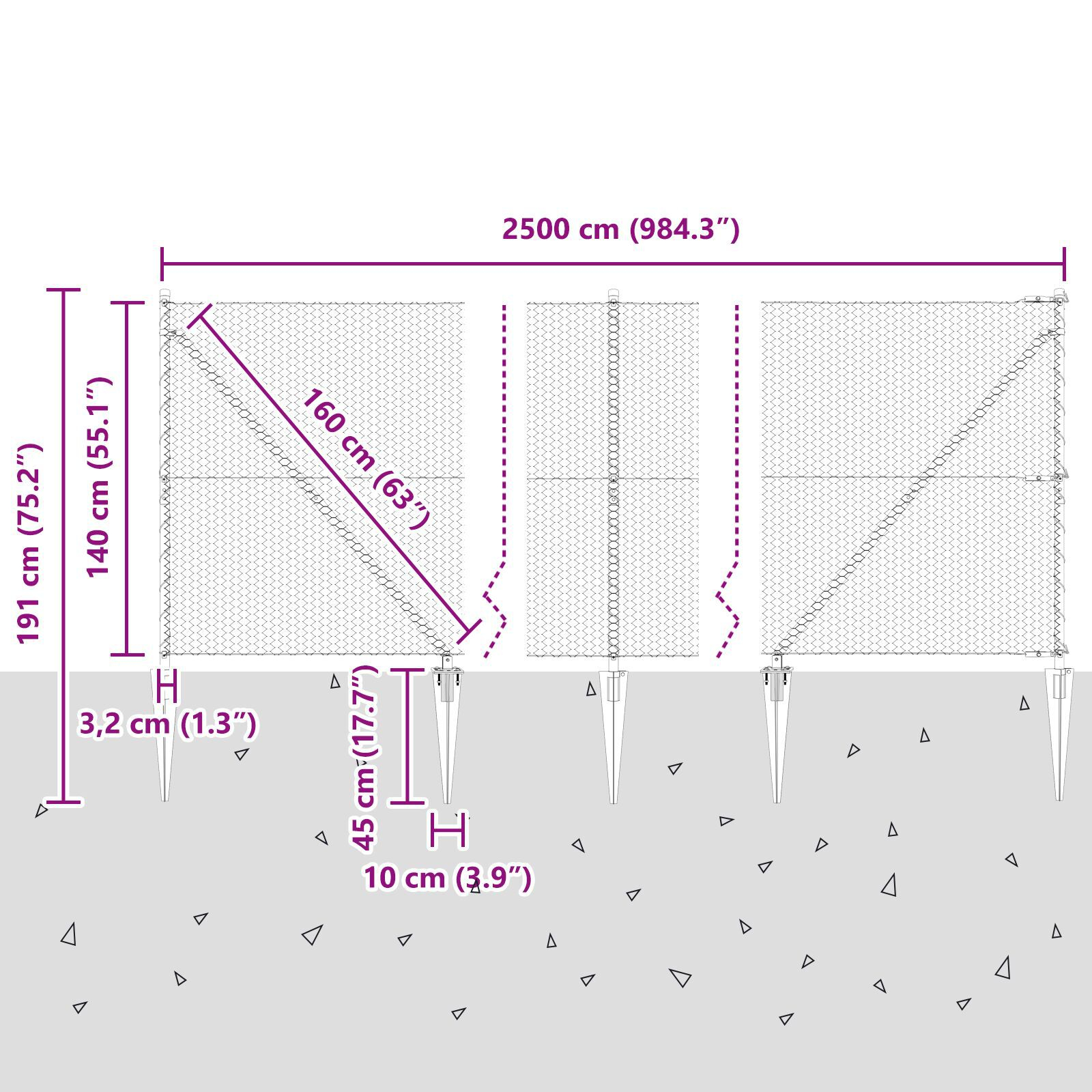 Gard hexagonal Gri 1.4x25 m Oțel, Stâlpi de gard cu vârf 13 buc Ø32 mm 160 cm Oțel zincat GartenMobel Dekor