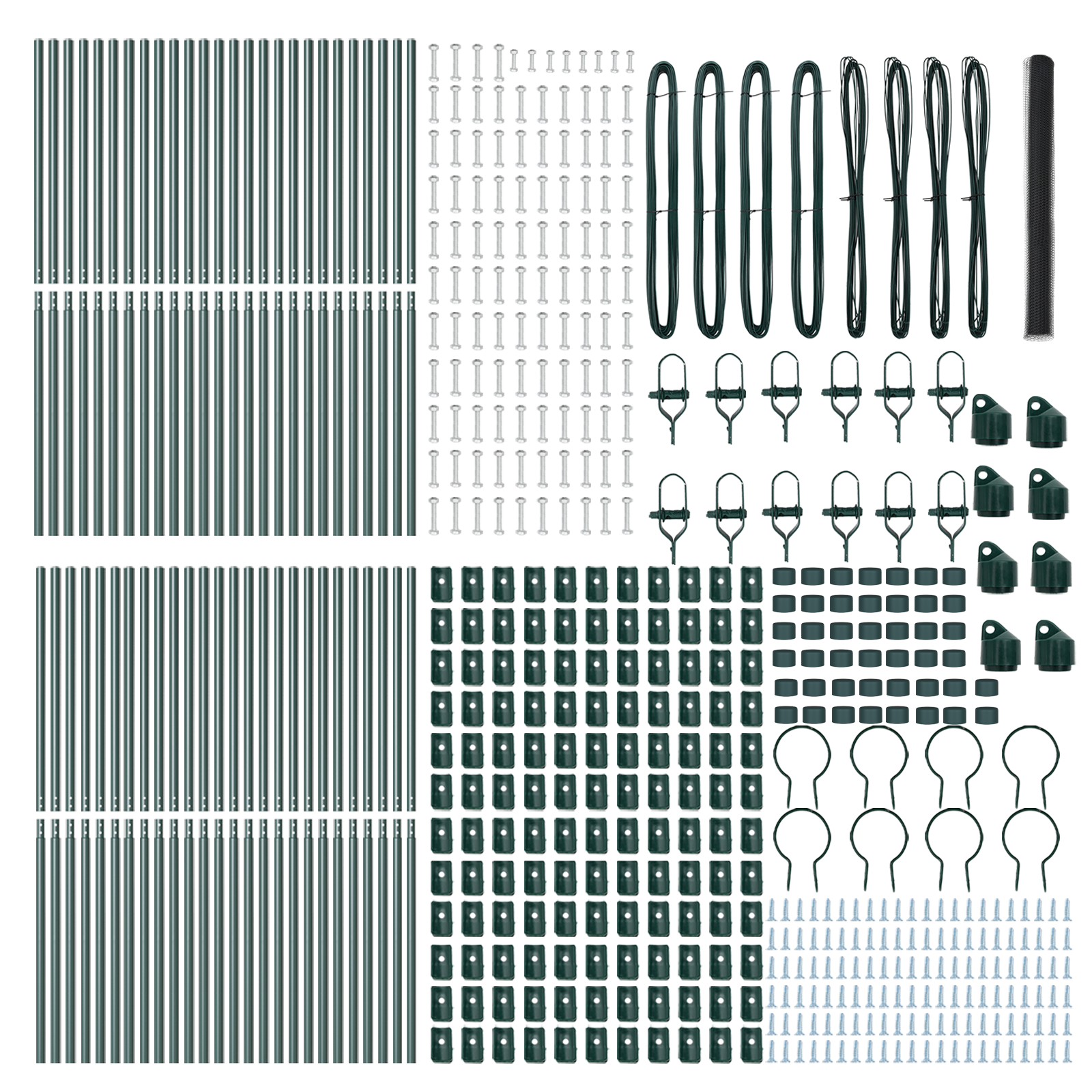 - Kit complet pentru împrejmuire: Kitul conține toți cei 5 stâlpi de gard, prinderi, benzi de tensiune și legături necesare pentru instalare.