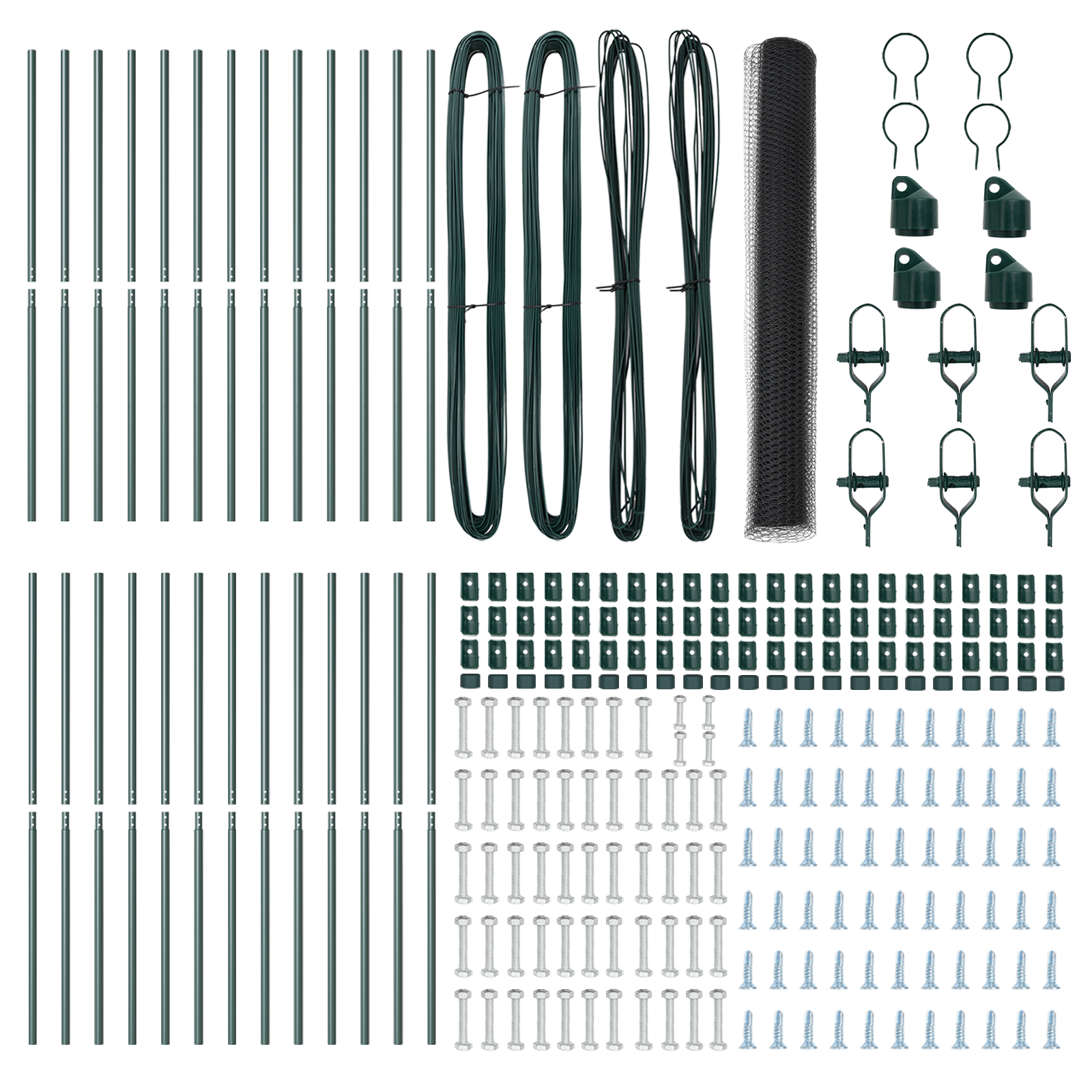 - Kit Complet: Setul acesta conține tot ce îți trebuie, cum ar fi stâlpi de gard, plasă, legături și cleme, asigurându-ți tot ce ai nevoie pentru montaj rapid.