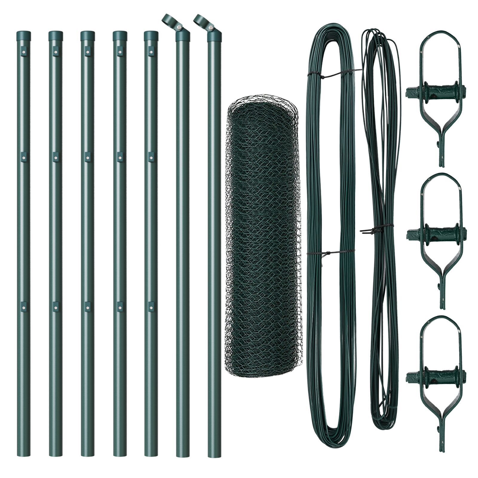 Gard hexagonal verde 0.4x10 m oțel, Posturi pentru gard 7 buc. verde Ø32 mm 80 cm oțel galvanizat GartenMobel Dekor