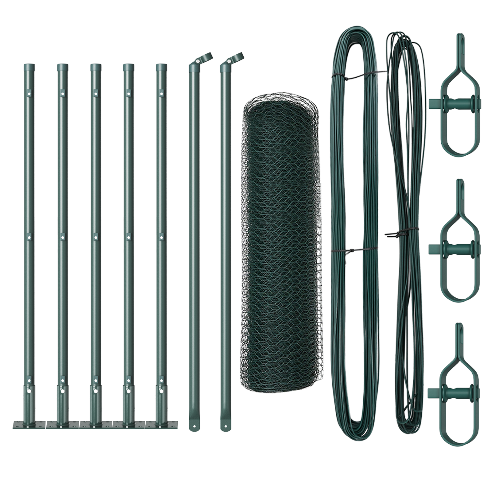 - Delivery Contains: Fence components: posts, mesh roll, tension wire, concrete base fix