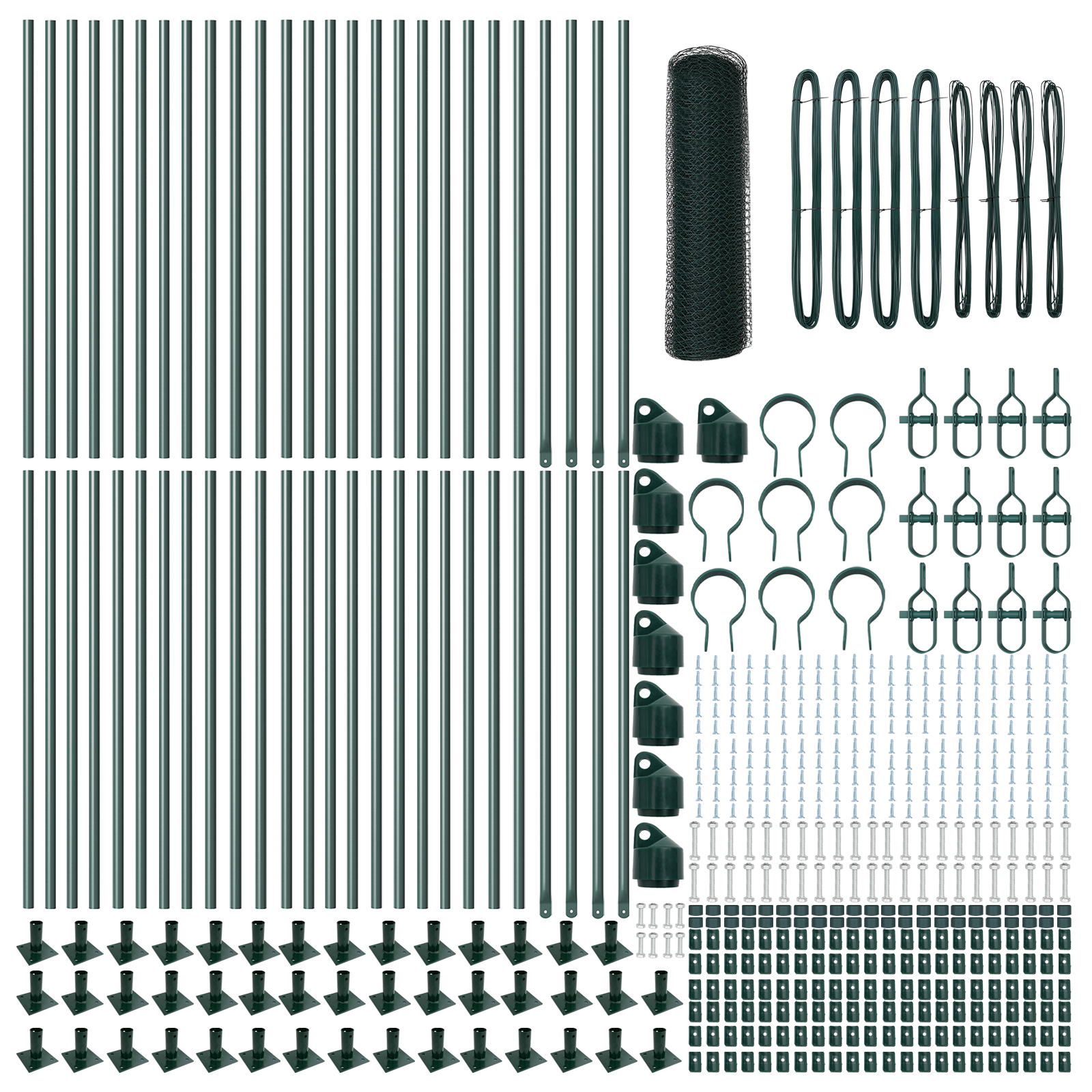 Gard Hexagonal Verde 0.8x100 m Oțel, Stâlpi de Gard cu Plăci de Bază 13 buc Ø32mm 90cm Oțel Zincat GartenMobel Dekor
