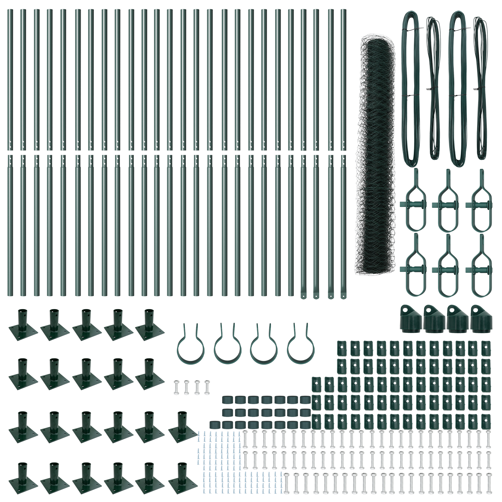 Gard Hexagonal Verde 1.2x50 m Oțel, Stâlpi de Gard cu Plăci de Bază 13 buc Ø32mm 68.5cm Oțel Zincat GartenMobel Dekor