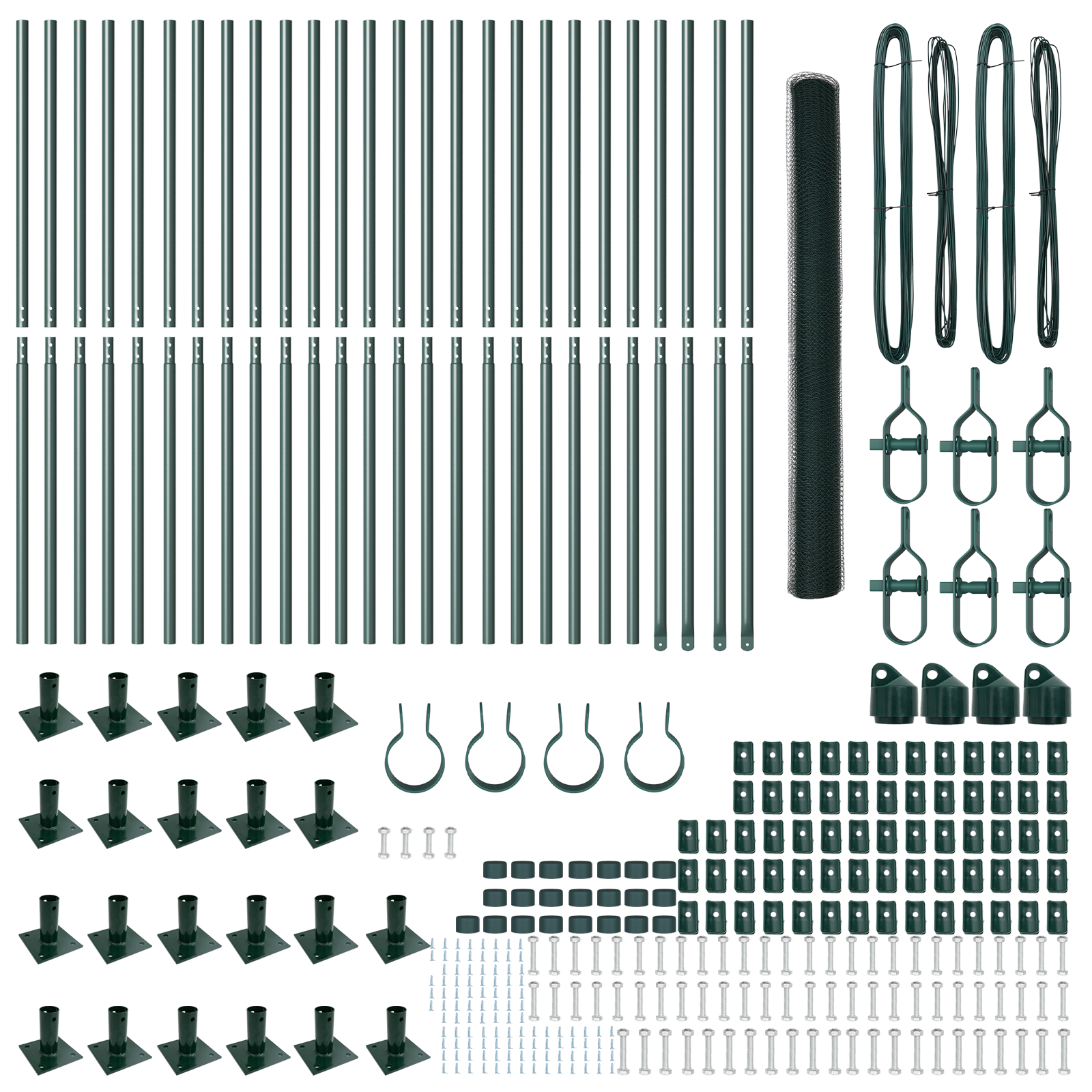 - Kit Complet: Setul include toate piesele necesare, precum stâlpi de gard, șine, role de plasă și tensiuni, astfel încât instalarea devine o joacă de copii.