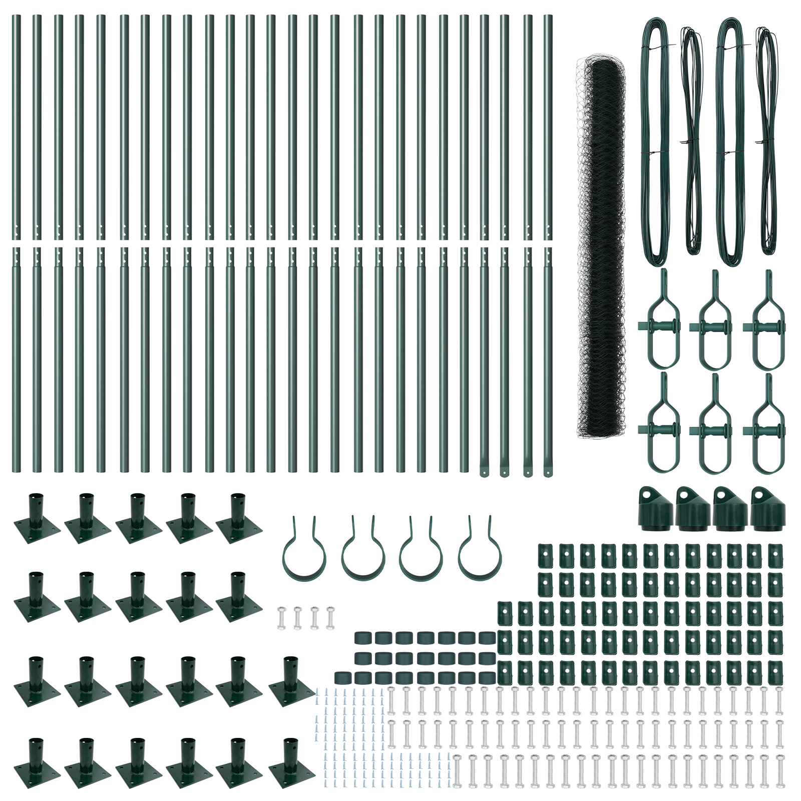 Gard Hexagonal Verde 1.5x50 m Oțel, Stâlpi gard cu plăci de bază 13 buc Ø32mm 83.5cm Oțel zincat GartenMobel Dekor