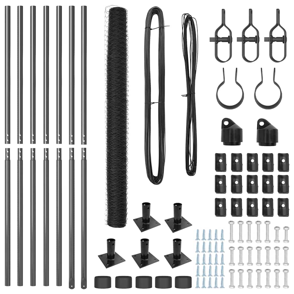Gard metalic gri pentru gradina, 10 x 1,5 m, plasa 36 mm, otel si PVC