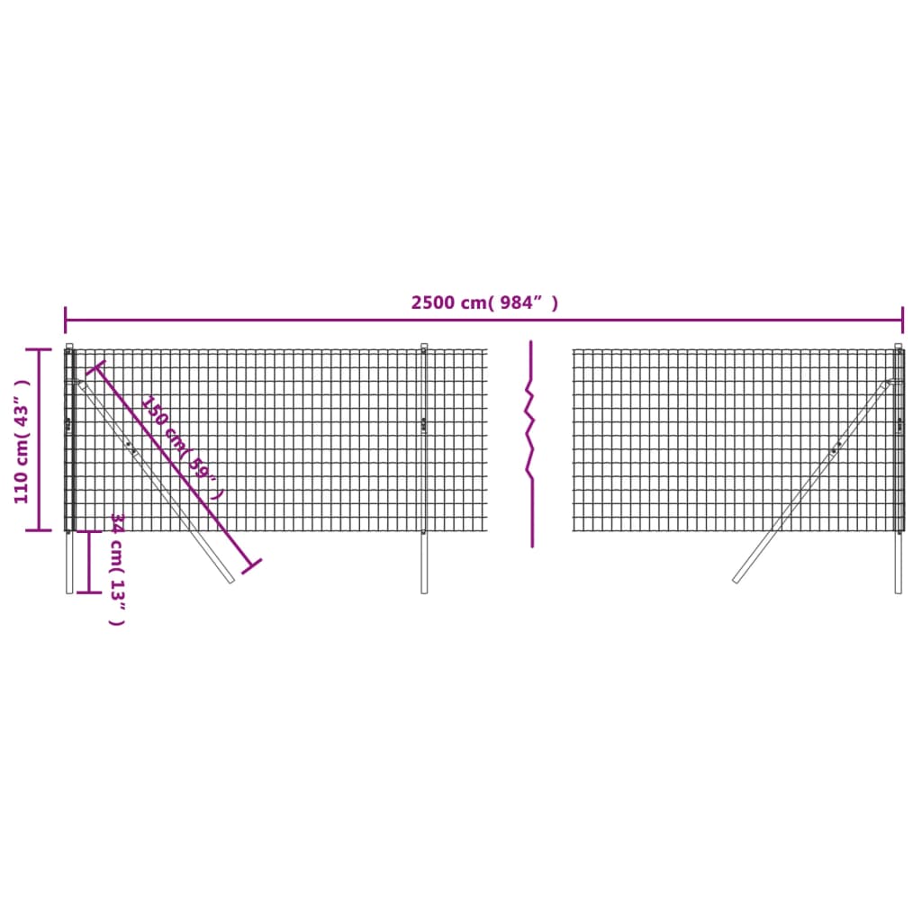 Gard plasă de sârmă, antracit, 1,1x25 m, oțel galvanizat GartenMobel Dekor