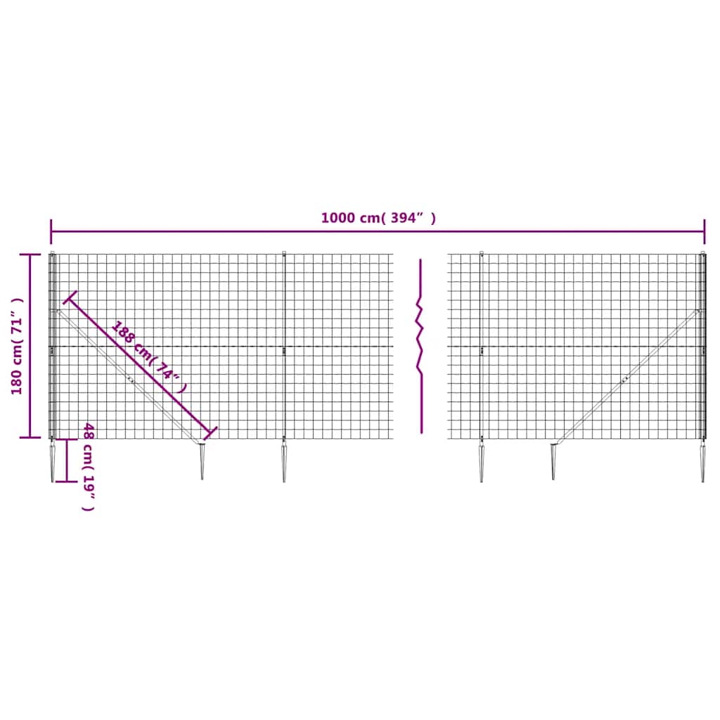 Gard plasă de sârmă cu țăruși de fixare, antracit, 1,8x10 m GartenMobel Dekor
