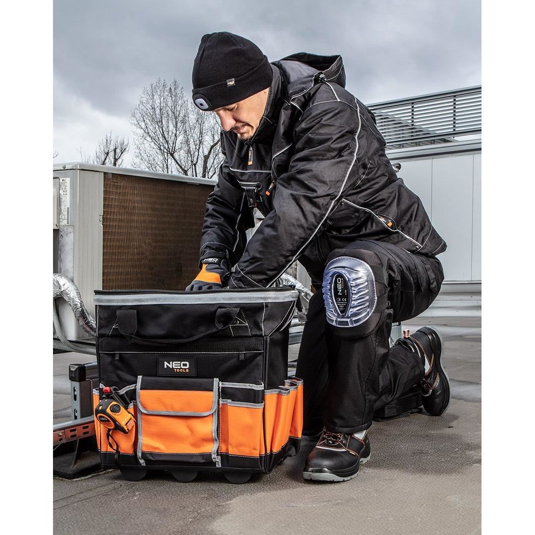 Geaca de lucru cu gluga NEO este rezistenta la vant si la apa.
