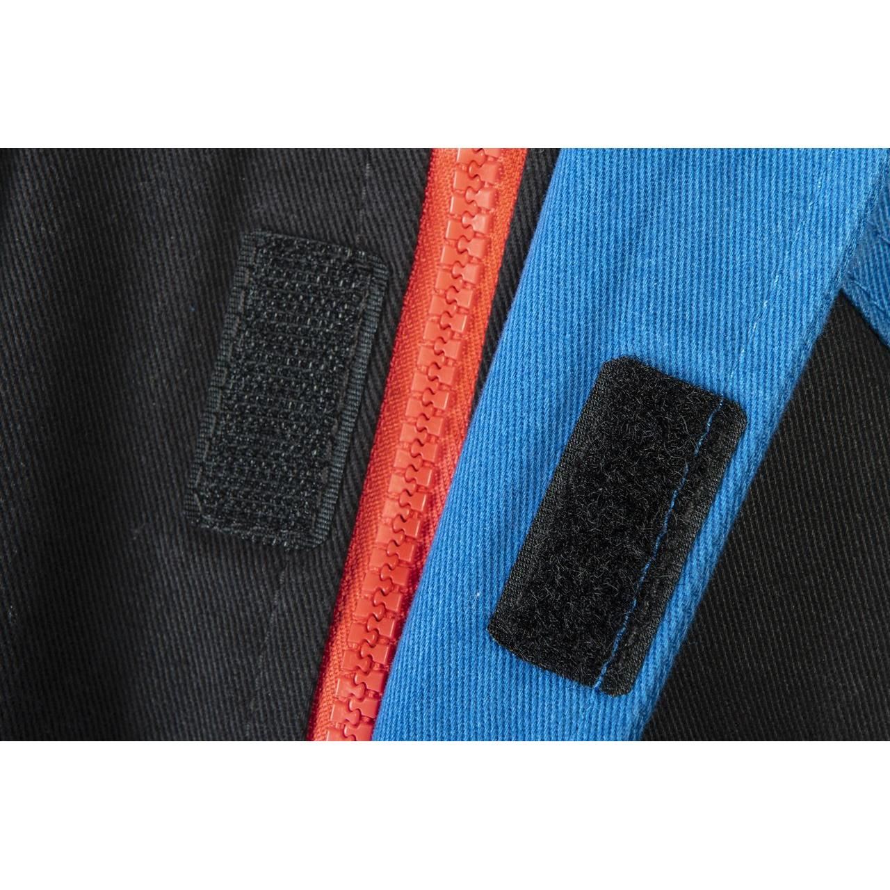 Geaca se distinge printr-o combinatie indrazneata de culori, iar croiul modern permite produsului sa fie folosit si in afara muncii.