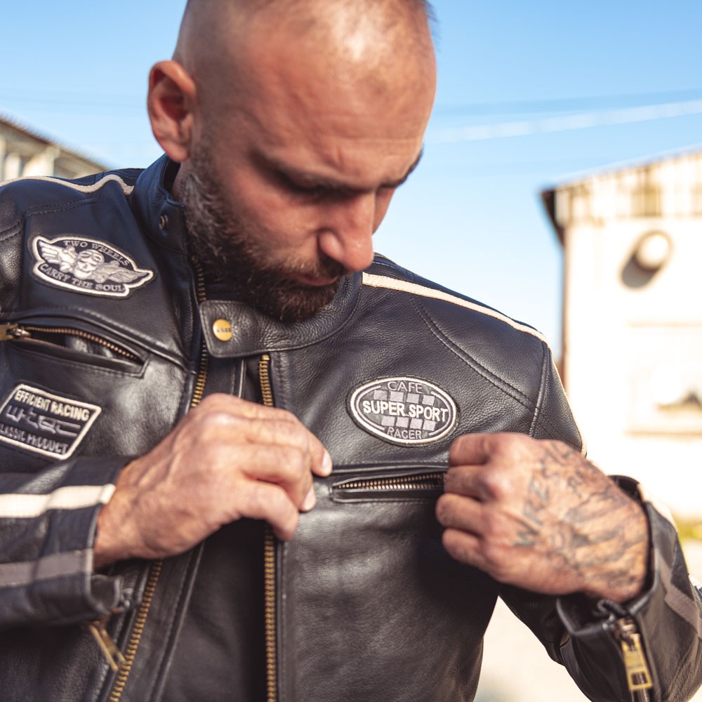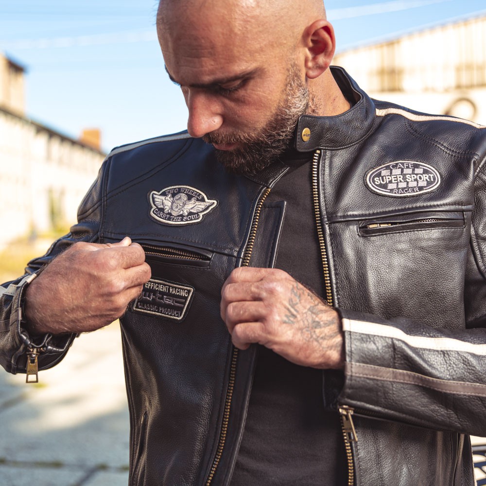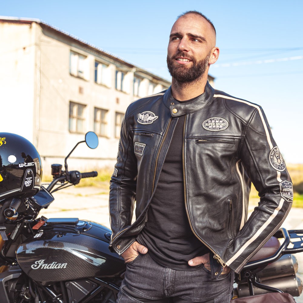 Designul elegant cu petice cool face din Geaca Moto de Barbati din Piele W-TEC Makso o geaca populara