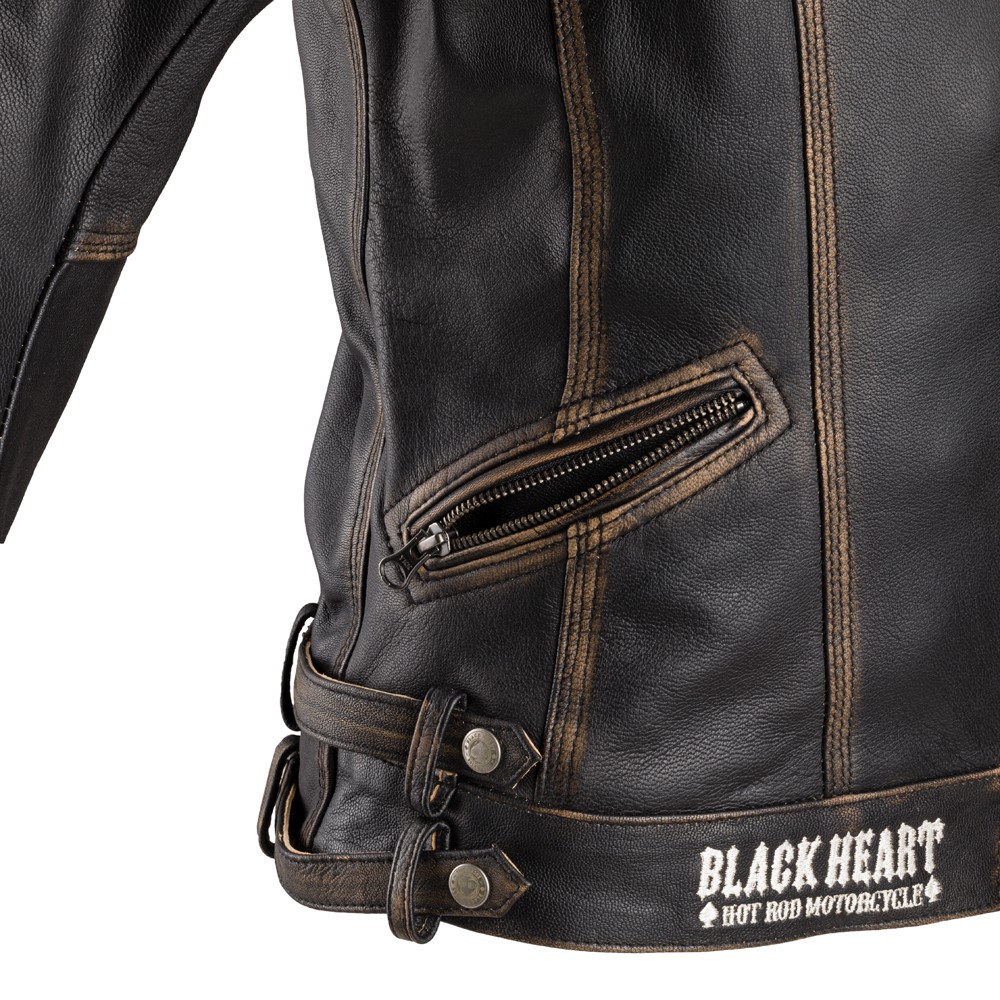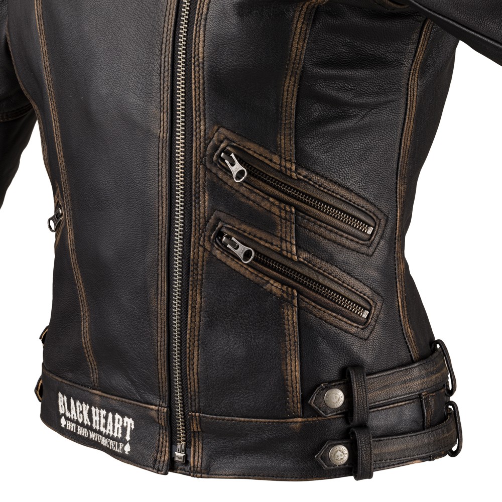 Geaca Moto de Piele pentru Femei W-TEC Black Heart Lizza este o geaca eleganta, in stil jackknife. Caracteristica tipica a acestei jachete este fermoarul principal, care nu merge in jos pe centrul jachetei ci pe latera. In afara de aspectul vintage, s-ar putea sa apreciati si pielea de capra moale si flexibila, care face ca geaca sa fie extrem de confortabila. Inscriptia Black Heart cusuta face ca jacheta sa para cu adevarat rezistenta!
