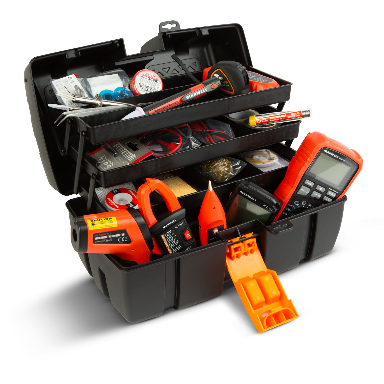 Aspect clasic, cutie de instrumente cu deschidere în stil acordeon. Fabricat din plastic durabil, ceea ce îl face rezistent la utilizare intensivă. Secțiunea superioară cu deschidere largă asigură accesul ușor la unelte. Aranjamentul pe trei niveluri permite depozitarea organizată a diverselor unelte, făcându-le ușor accesibile și clar vizibile.