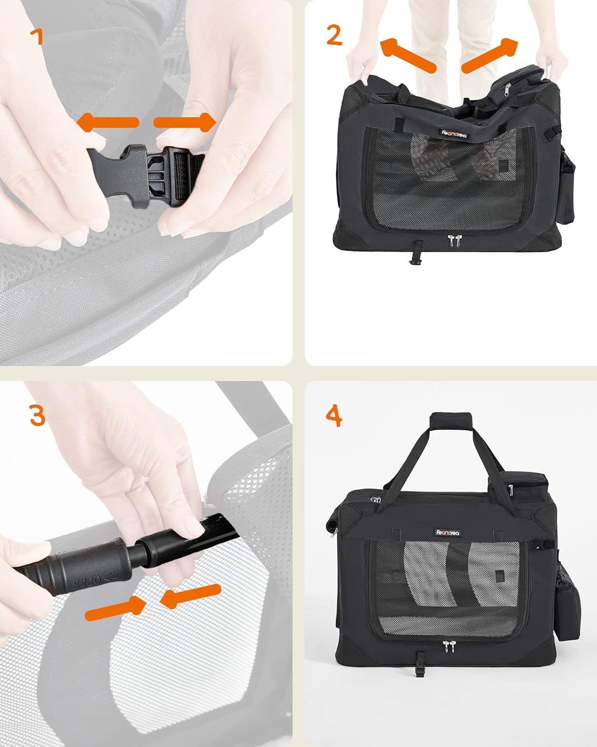 Dacă îți dorești o geantă de transport animale rezistentă, comodă și ușor de depozitat, acest model FEANDREA este o alegere excelentă pentru deplasări fără stres, atât pentru tine, cât și pentru companionul tău.